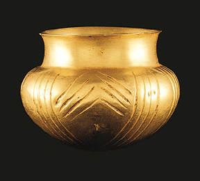 Hammered gold bowl with incised linear decoration from the Euboea Treasure. Early Helladic II. Athens, Benaki Museum 1516. Fotopoulos, D. and Delivorrias, A., Greece at the Benaki Museum, Benaki Museum, Athens 1997, cat. no 55. © Benaki Museum