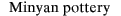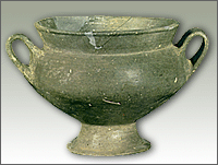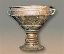 | Minyan pottery is the most typical Middle Helladic ceramic ware. Its first examples appeared already from the Early Helladic III period (2300-2000 BC). This pottery was named after Minyas, the mythical king of Orchomenos, since Minyan ceramics were first unearthed in the Middle Helladic strata of this settlement. Minyan ceramics were either handmade or wheelmade. The fine traces of the potter's wheel visible on the surface of the vases show that this type of pottery was manufactured with a more advanced and faster wheel than the other ceramic wares. The various colours of the surface of Minyan ceramics have been acquired through different firing conditions. The Gray Minyan ware has been achieved by firing in reducing atmosphere. Conversely, the Yellow and Red Minyan have acquired these colours by oxidized conditions. Another typical trait of Minyan vases is the so-called "soapy" feel of their surface which is due to their hardness and to their careful burnishing. |