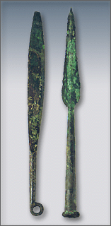 Mycenae, Grave Circle A. Copper dagger and spear from grave IV.