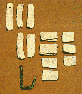 Περατή Αττικής, τάφος 131. Χάλκινο αγκίστρι και μολύβδινα βαρύδια για