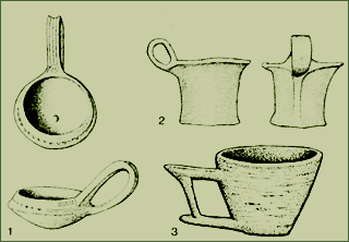 Πήλινα σκεύη, πιθανώς αιγαιακής προέλευσης, που μιμούνται μεταλλικά πρότυπα.