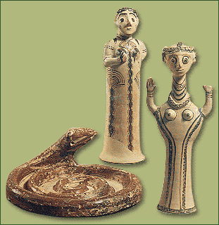 Ομοίωμα φιδιού και γυναικεία ειδώλια από το θρησκευτικό κέντρο των Μυκηνών