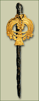 Μυκήνες, Ταφικός Κύκλος Α, τάφος III. Ασημένια περόνη με χρυσή κεφαλή.