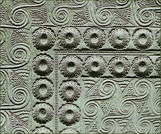 Ορχομενός, θολωτός τάφος. Λεπτομέρεια σχεδιαστικής αναπαράστασης της οροφής.