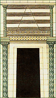Μυκήνες. Αναπαράσταση της πρόσοψης του "θησαυρού του Aτρέως".