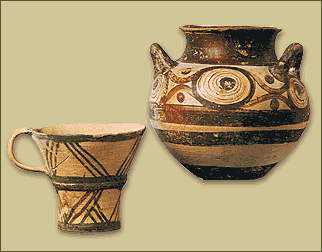 Αγγεία της Υστεροελλαδικής I περιόδου: κύπελλο τύπου Βαφειού (Ηλεία) και