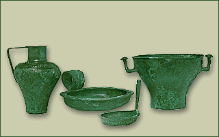 Ασίνη, θαλαμωτός τάφος 1, 5. Χάλκινα αγγεία: πρόχους, φιάλη, τηγάνι και