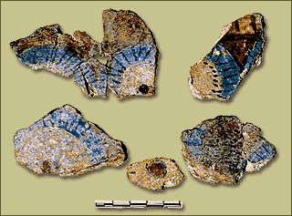 Γλας, δωμάτιο Η4. Θραύσματα τοιχογραφίας με παράσταση ροδάκων.Θήβα, Αρχαιολογικό Μουσείο. ΥΠΠΟ/ΤΑΠ.