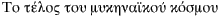Η περίοδος ακμής του μυκηναϊκού πολιτισμού τερματίστηκε στα τέλη του 13ου αιώνα, όταν γύρω στο 1200 π.Χ. όλα τα ανάκτορα της ηπειρωτικής Ελλάδας καταστράφηκαν σχεδόν ταυτόχρονα από ακόμη ανεξακρίβωτες αιτίες. Μαζί τους κατέρρευσε και το αυστηρά ιεραρχημένο σύστημα της μυκηναϊκής διοίκησης. Μετά τις καταστροφές των ανακτόρων, σημειώνονται ριζικές αλλαγές που αφορούσαν την κοινωνική οργάνωση και την οικονομική ζωή, όπως η συρρίκνωση της παραγωγής, ο περιορισμός του εξωτερικού εμπορίου και η κατάργηση της γραφής. Αν και τα φαινόμενα αυτής της εποχής έρχονται σε έντονη αντίθεση με το προηγούμενο διάστημα της μυκηναϊκής ακμής, τα νέα φαινόμενα δε θεωρούνται μεγάλες πολιτισμικές αλλαγές, καθώς δε φαίνεται να αλλοίωσαν σημαντικά το κοινωνικό υπόστρωμα. Οι ριζικότερες πολιτισμικές αλλαγές έρχονται μετά το τέλος της Υστεροελλαδικής ΙΙΙ Γ, όταν κάνουν την εμφάνισή τους πραγματικά νέα φαινόμενα που εκδηλώνονται κυρίως στα ταφικά έθιμα: το φαινόμενο των ομαδικών ενταφιασμών σε θαλαμοειδείς τάφους σταδιακά καταργήθηκε και ακολούθησε ο ατομικός ενταφιασμός σε απλούς κιβωτιόσχημους τάφους και η καύση των νεκρών. Τα αίτια της μυκηναϊκής παρακμής έχουν αναζητηθεί κατά καιρούς σε εντελώς διαφορετικές αιτίες, από την επιδείνωση των κλιματικών συνθηκών που ίσως κατέστρεψε τις καλλιέργειες και προκάλεσε ασθένειες στον πληθυσμό και την οικονομική παρακμή που ήταν το αντίκτυπο της διεθνούς κρίσης στην Ανατολή, έως την κοινωνική αναταραχή και την πολιτική αστάθεια που προκλήθηκαν από εσωτερικές έριδες. Ένα αποφασιστικό ρόλο ίσως έπαιξαν και οι ριζικές αλλαγές που σημειώνονται στις μορφές της άμυνας. Για ένα μεγάλο διάστημα η επικρατούσα άποψη ήταν ότι υπεύθυνοι για την καταστροφή των ανακτόρων ήταν ξένοι εισβολείς που έφτασαν στην ηπειρωτική Ελλάδα από το Βορρά, πράγμα που διαπιστώνεται και από την εμφάνιση της λεγόμενης βαρβαρικής κεραμικής σε στρώματα της Υστεροελλαδικής ΙΙΙ Γ περιόδου. Οι ξένοι επιδρομείς θεωρείται ότι προέρχονταν από τις κεντρικές περιοχές του Δούναβη και έχουν συνδεθεί κατά καιρούς από τους ερευνητές με τα πρώτα ελληνικά φύλα των Δωριέων και με τους "λαούς της θάλασσας" που αναφέρονται σε αιγυπτιακά κείμενα αυτής της περιόδου. |