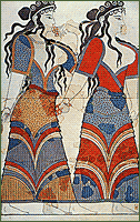 Η γυναικεία μυκηναϊκή ενδυμασία αποδίδεται συχνά και με αρκετές λεπτομέρειες στις παραστάσεις των τοιχογραφιών και στα σφραγιστικά δαχτυλίδια. Στις περισσότερες από αυτές τις παραστάσεις το γυναικείο ένδυμα δε διακρίνεται σχεδόν καθόλου από το μινωικό. Αποτελείται όπως και αυτό από ένα στενό περικόρμιο που άφηνε ελεύθερο το στήθος, μια μακριά φούστα με βολάν και μια ποδιά. Το ένδυμα αυτό ήταν πάντοτε διακοσμημένο στις παρυφές και στις ραφές του με χρωματιστές υφαντές ταινίες, οι οποίες κοσμούσαν και ταυτόχρονα στερέωναν το ύφασμα. Παρά τη μεγάλη ομοιότητά τους με τα μινωικά, τα μυκηναϊκά ενδύματα παρουσιάζουν και ορισμένες ουσιαστικές διαφορές από αυτά. Η πιο ουσιαστική διαφορά είναι ότι στην ηπειρωτική Ελλάδα χρησιμοποιούνται απλούστερα υφάσματα που διαφέρουν από τα μινωικά στην εκζήτηση και στην εκτέλεση των υφαντικών σχεδίων. Συχνά τα ενδύματα ανήκαν μεν στο μινωικό τύπο αλλά ήταν μονόχρωμα ή διακοσμημένα με απλά σχέδια. Παράλληλα παρατηρούνται και ορισμένες τοπικές ιδιομορφίες, όπως η χρήση ενός ορισμένου είδους υφάσματος με θηλειές, του φλοκιαστού, που φαίνεται ότι ήταν περισσότερο διαδεδομένο στην ηπειρωτική Ελλάδα. Και ενώ οι περισσότερες εικονιστικές παραστάσεις δείχνουν την ενδυμασία να κινείται στην τροχιά της μινωικής μόδας, τα πήλινα γυναικεία ειδώλια προδίδουν μια σύγχρονη αλλά εντελώς διαφορετική ενδυματολογική παράδοση. Αυτές οι μορφές είναι ντυμένες με ένα μακρύ και ευρύχωρο χειριδωτό χιτώνα. Δεδομένου ότι τα μινωικά ενδύματα ήταν ένα είδος που είχαν εισάγει οι ανώτερες κοινωικές τάξεις, θεωρείται πιθανό ότι ο μακρύς χιτώνας αντικατοπτρίζει μία παλαιότερη ενδυματολογική παράδοση της Στερεάς Eλλάδας, η οποία λόγω της έλλειψης απεικονίσεων δεν είχε μέχρι τότε διασωθεί στην τέχνη. Η συνάντηση των δύο αυτών ενδυματολογικών τάσεων στη Μυκηναϊκή Ελλάδα μπορεί ακόμα να σημαίνει ότι τα ενδύματα του μινωικού τύπου ήταν μια συνειδητή διαφοροποίηση του ενδύματος των ευγενών από εκείνο του λαού ή ότι αντιπροσώπευαν "ειδικά" ενδύματα που φοριούνταν μόνο σε ορισμένες περιστάσεις ή μόνο κατά τη διάρκεια θρησκευτικών τελετών. |