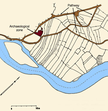 Drawing of the settlement of Al Mina at the mouth of the Orontes river. Processing: Foundation of Hellenic World