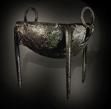 Χάλκινος χυτός τριποδικός λέβητας από την Ολυμπία. Πρόκειται για αγγείο μικρώνδιαστάσεων με χρηστικό χαρακτήρα. Ανήκει στην ομάδα Α' και χρονολογείται στον 9οαιώνα π.Χ.