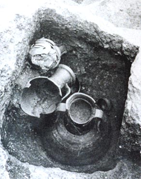 το νεκροταφείο του Κεραμεικού. Στο βάθος του ορθογώνιου λάκκου διακρίνονται