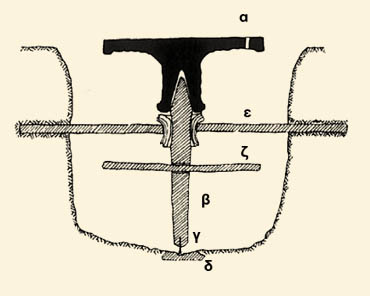 έδρα στήριξης (πλιθί), ε. χειροκίνητος μοχλός ώθησης, στ. εγκάρσια