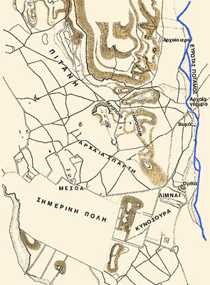 Τοπογραφικό σχέδιο της αρχαίας Σπάρτης.