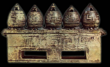 Γεωμετρική πυξίδα με τη μορφή σιταποθηκών. Βρέθηκε σε ταφή πλούσιας Αθηναίας στα βορειοδυτικά του Αρείου Πάγου. Μέσα 9ου αιώνα π.Χ.