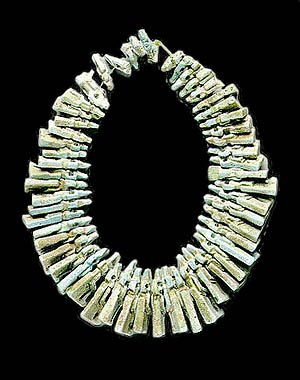 Περιδέραιο από φαγεντιανή με χάντρες που παριστάνουν την Ίσιδα και τον Ώρο, το οποίο βρέθηκε στο Λευκαντί της Εύβοιας. Πιθανότατα προέρχεται από την Κύπρο. 11ος-10ος αιώνας π.Χ.