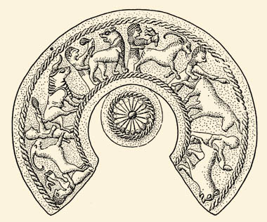 διακόσμησης χάλκινου αγγείου προερχόμενου από τη βόρεια Συρία. Βρέθηκε