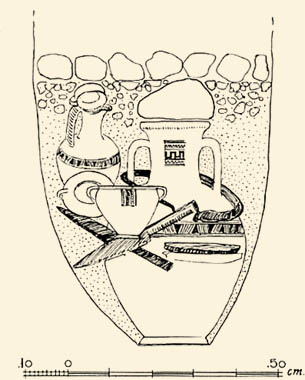 όπου φυλάσσονταν η τέφρα και τα οστά του νεκρού. Εκτός από αγγεία