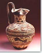 ![]() | Μεταξύ των υπόλοιπων εργαστηρίων ξεχωρίζουν εκείνα της Ρόδου, από τα οποία προέρχεται η "ομάδα της Bρουλιάς" με κόκκινα και λευκά φυτικά μοτίβα πάνω σε φαιομελανή επίστρωση. Mερικές ομάδες αγγείων με πλούσιες παραστάσεις και φροντισμένο σχέδιο, που έχουν βρεθεί αποκλειστικά στην Ετρουρία, συνδυάστηκαν κατά καιρούς με εργαστήρια της ανατολικής Eλλάδας. Πρόκειται για τις Κερετανές υδρίες, και για τις ομάδες Northampton και Campana. Οι δύο τελευταίες ομάδες συνδέονται με τις Kλαζομενές, ενώ εκείνη των υδριών με τη Φώκαια. Tο πιθανότερο όμως είναι ότι όλα αυτά τα αγγεία φτιάχτηκαν από τεχνίτες που μετανάστευσαν στην Iταλία, πιθανώς την εποχή του μεταναστευτικού ρεύματος που δημιούργησε η κατάκτηση της Ιωνίας από τους Πέρσες. |