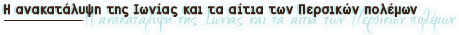 Μετά την ήττα τους οι Αθηναίοι και οι Ερετριείς εγκατέλειψαν τους Ίωνες, αλλά η επανάσταση είχε στο μεταξύ επεκταθεί από τα Στενά μέχρι την Κύπρο. Οι Πέρσες είχαν ήδη αρχίσει να ανασυντάσσουν τις δυνάμεις τους και, αφού κατέλαβαν την Κύπρο και μετά από μεγάλη αντίσταση την Καρία, επιτέθηκαν το 496 π.Χ. στην Ιωνία. Το 494 π.Χ. μετά την κατάληψη και των υπόλοιπων πόλεων ο περσικός στρατός και στόλος πολιόρκησε τη Μίλητο, όπου ήταν συγκεντρωμένες οι δυνάμεις των επαναστατών. Στη ναυμαχία της Λάδης, έξω από τη Μίλητο, ο περσικός στόλος νίκησε το στόλο των Ιώνων. Η Μίλητος καταλήφθηκε και καταστράφηκε, ενώ οι κάτοικοί της οδηγήθηκαν στο εσωτερικό της αυτοκρατορίας. Ο Δαρείος, όμως, αντιμετώπισε με μετριοπάθεια τις επαναστατημένες πόλεις. Δεν επέβαλε ξανά τυράννους, την πολιτική των οποίων θεώρησε υπεύθυνη για την επανάσταση, δεν αύξησε τους φόρους και για πρώτη φορά εισήγαγε το θεσμό του κτηματολογίου. | ![]() |