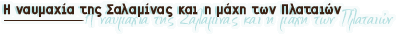 Μέσα σε οκτώ ημέρες από τη μάχη των Θερμοπυλών ο περσικός στρατός έφτασε στα όρια της Αττικής. Ο Θεμιστοκλής πέτυχε να πείσει τους Αθηναίους να εγκαταλείψουν την πόλη τους και να παρατάξουν το στόλο τους στο στενό της Σαλαμίνας, δίνοντας στο χρησμό του μαντείου των Δελφών την ερμηνεία ότι οι Έλληνες πρέπει να καταφύγουν πίσω από το ξύλινο τείχος. Οι Πελοποννήσιοι προτιμούσαν να αγωνιστούν στον Ισθμό, όμως ο Θεμιστοκλής απείλησε ότι σε περίπτωση που οι σύμμαχοι δε συμφωνούσαν με την τακτική του, οι Αθηναίοι θα μετανάστευαν στην Κάτω Ιταλία. Οι Πέρσες επιτέθηκαν το πρωί της 29ης Σεπτεμβρίου, αφού απέκλεισαν τις διόδους του στενού, για να εμποδίσουν τη φυγή των Ελλήνων. Όπως είχε προβλέψει ο Θεμιστοκλής, δεν μπόρεσαν να αξιοποιήσουν την αριθμητική υπεροχή του στόλου τους. Οι Έλληνες εκμεταλλευόμενοι τα ρεύματα της περιοχής είτε εμβόλιζαν τα περσικά πλοία, είτε, αφού τα ακινητοποιούσαν, οι οπλίτες επιτίθονταν στα πληρώματά τους. Ο περσικός στόλος τράπηκε τελικά σε άτακτη φυγή και κατέφυγε στον όρμο του Φαλήρου. | ![]() |