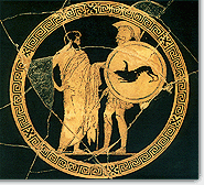 Ορισμένα έθνη, τέλος, όπως οι Αιτωλοί, Ακαρνάνες και Λοκροί στην κεντρική Ελλάδα και οι Αχαιοί, Αρκάδες και Ηλείοι στην Πελοπόννησο, λόγω της διαμόρφωσης του εδάφους τους -όπως αναφέρει και ο Θουκυδίδης για τους Αιτωλούς- συνέχισαν να ζουν κατά κώμας. Μετά τη συγκρότηση των πόλεων τα φυλετικά κράτη, όταν δε διαλύθηκαν -όπως συνέβη με την ένωση των ιωνικών πόλεων της Aττικής και της Eύβοιας κατά τον 8ο αιώνα π.Χ.- μετατράπηκαν σε κοινά με κέντρο το ιερό του προστάτη θεού τους, όπως του Θερμίου Aπόλλωνα στην Αιτωλία. | ![]() |