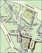 The ruins of a building known as Simon [450-410 B.C.] the Shoemaker's House was found at the south-west corner of the Agora. Although the building was inhabited for two centuries, very little of it survives. The best preserved part is a courtyard on the north-east side. Objects found there included potsherds, clay lamps, and coins - and also a number of little flat headed iron tacks and small bone rings. These are thought to be attachments for leather boots. Another strong indication that the house was a cobbler's workshop is a worn-down stone that must have been used by the craftsman to sharpen his knife on. The name 'Simon' was written in capital letters on the foot of a kylix from the third quarter of the fifth century B.C. that was found on site, which leads us to the conclusion that the owner of the workshop was called Simon. This tallies with references by Plutarch and Diogenes Laertius to a cobbler called Simon: both Pericles and Socrates found him 'an entertaining person'.