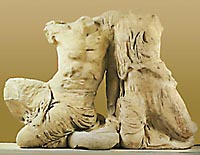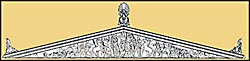 Τα γλυπτά διαγράφονταν ακόμα πιο έντονα στο βαθύ αέτωμα, καθώς το τύμπανο ήταν βαμμένο σκούρο μπλε. H δυναμικότητα των συνθέσεων εστιάζεται στην ένταση και την κινητικότητα των κεντρικών μορφών, ενώ προχωρώντας προς τα άκρα οι μορφές γαληνεύουν.