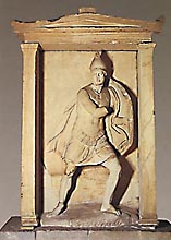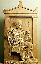 Τα επιτάφια μνημεία επανεμφανίζονται στην Αθήνα περίπου πενήντα χρόνια μετά την απαγόρευση του Κλεισθένη. Τα πρώτα από αυτά, περί το 450 π.Χ., είναι ορθογώνιες στήλες με αετωματική επίστεψη και με μια μόνο μορφή σε ανάγλυφο. Πρόκειται γενικά για έργα χαμηλής ποιότητας. Σταδιακά όμως ανέκτησαν την αίγλη των αρχαϊκών χρόνων και ορισμένα αποτελούν εξαίρετα δείγματα της αττικής γλυπτικής, όπως οι στήλες της Αμφαρέτης, του Εύφηρου και της Μνησαγόρας. Γνωρίζουμε πολλές περιπτώσεις, ιδίως στον 4ο αιώνα π.Χ., κορυφαίων γλυπτών της εποχής που φιλοτεχνούσαν και επιτύμβια γλυπτά. |