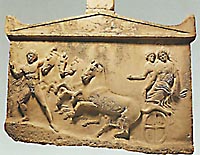 Τα αναθηματικά ανάγλυφα συνδέονται πιθανόν με παλαιότερα ξύλινα ανάγλυφα ή γραπτούς πίνακες που αφιερώνονταν στα ιερά. Η εμφάνισή τους στην Αττική συμπίπτει με την επανεμφάνιση των επιτύμβιων αναγλύφων. Συνήθως είχαν χαμηλό παραλληλόγραμμο σχήμα και αετωματική επίστεψη. Συχνά εικονίζεται και ο ίδιος ο αναθέτης. Οι θνητοί έχουν κατά κανόνα μικρότερο μέγεθος από τους θεούς και τους ήρωες, οι οποίοι τους υποδέχονται συχνά ξαπλωμένοι σε ανάκλιντρο. Η στάση αυτή συνδέεται με τα νεκρόδειπνα και προφανώς με τον αφηρωϊσμό των νεκρών. Οι θεοί που απεικονίζονται συχνότερα είναι η Άρτεμις, ο Πάνας, ο Διόνυσος, ο Πλούτωνας και κατά τον 4ο αιώνα π.Χ. ο Ασκληπιός. Εμφανίζονται ακόμα ο Αμφιάραος και η Υγεία, οι Διόσκουροι, ο Ζευς Φίλιος και ποτάμιοι θεοί, όπως ο Αχελώος. |