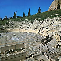 Η παράσταση (διδασκαλία) των τραγωδιών και του σατυρικού δράματος, τις τρεις τελευταίες μέρες των Μεγάλων Διονυσίων, είχε διαγωνιστικό χαρακτήρα. Όσοι ποιητές επιθυμούσαν να λάβουν μέρος υπέβαλλαν στον επώνυμο άρχοντα 3 τραγωδίες και 1 σατυρικό δράμα και εζήτουν χορόν. Ο επώνυμος άρχων εδίδου χορόν στα έργα τριών ποιητών και όριζε τους χορηγούς, τους οποίους είχαν υποδείξει οι φυλές. Οι χορηγοί αναλάμβαναν τα έξοδα που απαιτούνταν για τη διδασκαλία και την εμφάνιση των μελών του χορού, καθώς και για το χώρο των δοκιμών. Οι επιλεγμένοι τρεις ποιητές και οι ηθοποιοί (υποκριταί), τρεις για τον κάθε ποιητή, αμείβονταν από την πόλη.