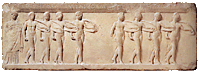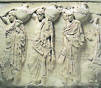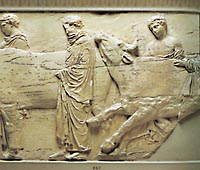 Ο πέπλος ήταν ένα μεγάλο τετράγωνο ύφασμα με παράσταση Γιγαντομαχίας, που ύφαιναν κάθε χρόνο οι εκλεκτές αθηναίες παρθένες (εργαστίναι) υπό την εποπτεία της ιέρειας της θεάς. Το ίδιο θέμα απεικονιζόταν στο αέτωμα του ναού της Αθηνάς, που οικοδομήθηκε την εποχή του Πεισίστρατου στην Ακρόπολη, και συνδεόταν με το μύθο της συμμετοχής και διάκρισής της στη Γιγαντομαχία. Ο πέπλος απλωνόταν σαν ιστίο σε ένα τροχοφόρο πλοίο που διέσχιζε την Αγορά και έφτανε μέχρι τον Άρειο Πάγο, ενώ στη συνέχεια μεταφερόταν στα χέρια και παραδιδόταν στους ιερείς που αναλάμβαναν να ντύσουν με αυτόν το άγαλμα της θεάς. Στην πομπή συμμετείχαν γυναίκες με κάνιστρα (καλάθια), τα οποία περιείχαν προσφορές για τη θεά και τα μετέφεραν στο κεφάλι (κανηφόροι), ηλικιωμένοι που κρατούσαν κλαδιά ελιάς (θαλλοφόροι), έφιπποι νέοι, καθώς και άλλοι άντρες που κρατούσαν δοχεία, σκάφες, (σκαφηφόροι) και γυναίκες ή νεαρά κορίτσια με υδρίες στον ώμο (υδριαφόροι). Η προσφορά και η μεταφορά των αγγείων αυτών ήταν καθήκον των μετοίκων. Την πομπή ακολουθούσαν και όσα ζώα (αίγες, κριάρια, ταύροι, αγελάδες, πρόβατα) προορίζονταν για τις θυσίες στην Αθηνά. Σύμφωνα με την πλειονότητα των μελετητών, η πομπή των Mεγάλων Παναθηναίων απεικονίστηκε στη ζωφόρο του Παρθενώνα.