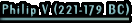 Son of Demetrius II and his second wife, Phthia or/and Chryseis and father of Perseus. His mother was the daughter of Alexander II of Epirus and of Olympias II and sister of Pyrrhus II of the Molossi. He succeeded his father to the throne of the Macedonian kingdom in 221 BC. In 215 BC he allied with Hannibal, king of Carthage. Since 214-205 BC he fought against the Romans during the 1st Macedonian war. This was repeated during the period 200-197 BC, during the 2nd Macedonian war, that ended with the defeat of Philip in Cynoscephalae. Since 196-179 BC he consolidated again the power of Macedonia. After his death he was succeeded by his son Perseus.