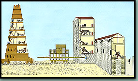02. Drawing of a battering ram, which was used in the siege of Rhodes by Demetrius Poliorcetes, and part of the island's fortification.