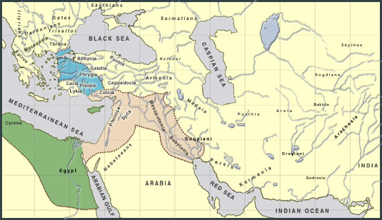 The Hellenistic world in 145 BC.