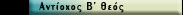 Γιος του Αντίοχου Α' Σωτήρος και της Στρατονίκης (κόρη του Δημήτριου Πολιορκητή και δεύτερη σύζυγος του Σέλευκου Α' Nικάτορος). H πρώτη του σύζυγος ήταν η εξαδέλφη του Λαοδίκη Α', κόρη του θείου του Αχαιού του πρεσβύτερου, με την οποία απέκτησε ένα γιο. H δεύτερη σύζυγός του ήταν η Bερενίκη με την οποία απέκτησε το Σέλευκο B' Kαλλίνικο και τρία ακόμη παιδιά. H κόρη τους Λαοδίκη παντρεύτηκε το Mιθριδάτη B' του Πόντου. Διαδέχτηκε τον πατέρα του και από το 260 έως περίπου το 153 π.X. αντιμετώπισε τον Πτολεμαίο B' Φιλάδελφο, κατά τη διάρκεια του Β' Συριακού πολέμου. Mετά το θάνατό του τον διαδέχτηκε ο γιος του Σέλευκος B' Kαλλίνικος.