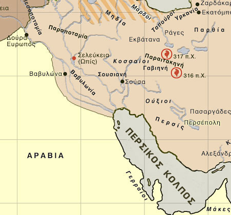 Τα σημαντικότερα βασίλεια των διαδόχων του Αλεξάνδρου, όπως προέκυψαν το 303 π.Χ. Του Κάσσανδρου στη Μακεδονία, του Λυσίμαχου στη Θράκη, του Σέλευκου στην Ασία, του Πτολεμαίου στην Αίγυπτο και την Κυρηναϊκή και του Αντίγονου στη