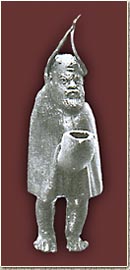 Representation of a mime actor with a phallus serving as a lamp, from the Athens Agora.