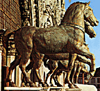 the Venetians. They also record the attitude of the Westerners towards the works of art and the holy relics of the Capital. These precious objects were carried off to the West, to enrich the treasuries of cathedrals and private collections. A typical example is that of the four bronze horses, which used to adorn the entrance of the Hippodrome in Constantinople and which today stand above the entrance of St. Mark's in Venice.