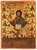 during this period, worth mentioning is the painter Angelos. More than 15 icons found today on Crete, Naxos, Patmos, Zakynthos, and in museums and private collections, bear his signature - "cheir Angelou" (by the hand of Angelos) - or are attributed to him on the basis of their stylistic features. The great number of icons leads us to suppose that Angelos must have had an important workskop in Chandax. Additional information on the painter is provided by the Venetian archives. In them there is a will, dated 1436, signed by one Angelos Akotantos, who has been identified with the painter whose name appears on the icons. This document provides valuable information concerning the family life and the professional activities of this outstanding artist, and his contacts with Constantinople, where Angelos lived during the first half of the 15th century.