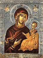 Θεοτόκος Ψυχοσώστρια. Κύρια όψη αμφιπρόσωπης εικόνας, αρχές 14ου αιώνα.