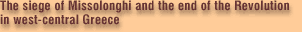 conquered Makrynoros, the passage from Epirus to west-central Greece, and then headed to Missolonghi with apparent ease. The defenders of the town, the centre of the revolution in west-central Greece, had reinforced the defences from land and the shallow lagoon. Many chieftains from neighbouring regions hurried to Missolonghi as well. The siege began at the end of April 1825 and was carried out in two phases, lasting the whole of the year. Until October the besieged withstood the pressure successfully and temporarily obliged Kutahye to cancel the siege, but this was only to become more intolerable (November 1825). Finally, on the night of the 10/11 of April 1826, the defenders, worn out by the twelve-month siege and the lack of food, brought off a desperate and at the same time heroic end.