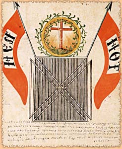 At the bottom is the text with the secret alphabet of the Philiki Etaireia. |