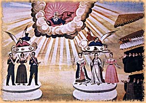 εικονίζεται ανάμεσα στον Όθωνα και την Αμαλία, ενώ παρίστανται ο λαός,