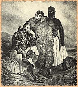 Η διάλυση των ατάκτων και η οργάνωση τακτικού στρατού ενέτεινε τη δυσαρέσκεια των ενόπλων της επαναστατικής περιόδου στα χρόνια της αντιβασιλείας. Η λιθογραφία είναι του Leon Noel και απεικονίζει έλληνες ατάκτους. Αθήνα, Γεννάδειος Βιβλιοθήκη. Χριστόπουλος, Γ,(εκδ), Ιστορία του Ελληνικού Έθνους: Νεώτερος Ελληνισμός από 1833 ως 1881, τ. ΙΓ', Εκδοτική Αθηνών, Αθήνα 1977, σ. 26. © Γεννάδειος Βιβλιοθήκη, Αθήνα.