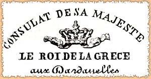 Σφραγίδα του ελληνικού υποπροξενείου των Δαρδανελίων. Αθήνα, Αρχείο Υπουργείου Εξωτερικών. Παπαθανάση-Μουσιοπούλου, Κ., Οικονομική και Κοινωνική Ζωή του Ελληνισμού της Θράκης κατά την Τουρκοκρατίαν, Αθήνα 1974, σ. 91. © Υπουργείο Εξωτερικών, Αθήνα.