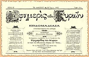 Το εξώφυλλο της Εφημερίδας των Κυριών. Αθήνα, Ε.Λ.Ι.Α. © Ελληνικό Λογοτεχνικό Ιστορικό Αρχείο, Αθήνα.