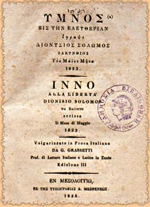 Ο Ύμνος εις την Ελευθερίαν του Διονύσιου Σολωμού. Εκδόθηκε στο Μεσολόγγι