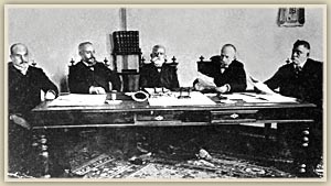 ο Μ. Πετυχάκης, ο Ε. Βενιζέλος, ο πρόεδρος Α. Μιχελιδάκης, ο Εμμ. Λογιάδης